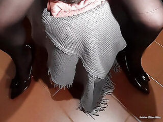 Dominatrix with big tits. Femdom she beats him with a belt 30times and he must count, pisses on him and makes him lick the cum.