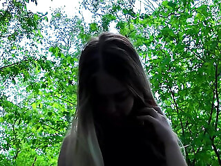 Miniature Schoolgirl Publicly in the Forest Masturbates Tight Pussy Moans Orgasm