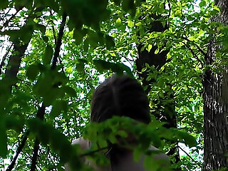 My big sister-in-law is walking around the farm, rubbing her fat ass and putting fingers in her pussy, urinating in the open wood.